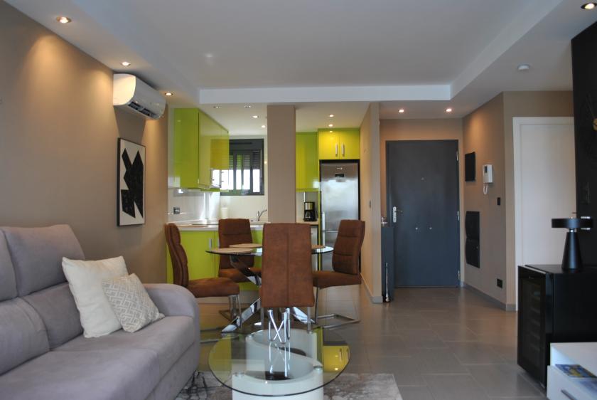 This is truly a wonderful place to be, situated in a vibrant and central area. It’s ideal for short holiday stays as well as long-term winter rentals, offering excellent amenities and all-day sunshine on the terrace. For golf enthusiasts, it is indeed a paradise.