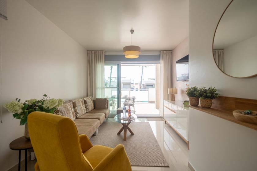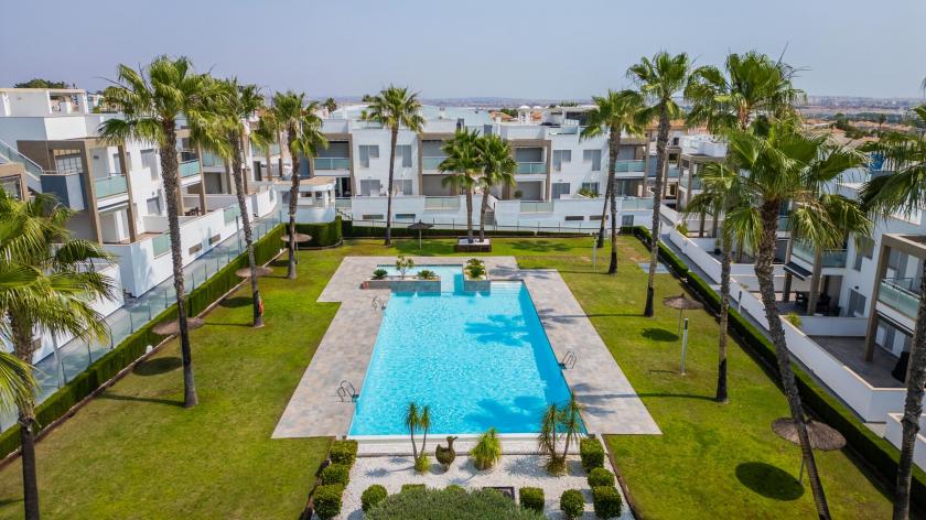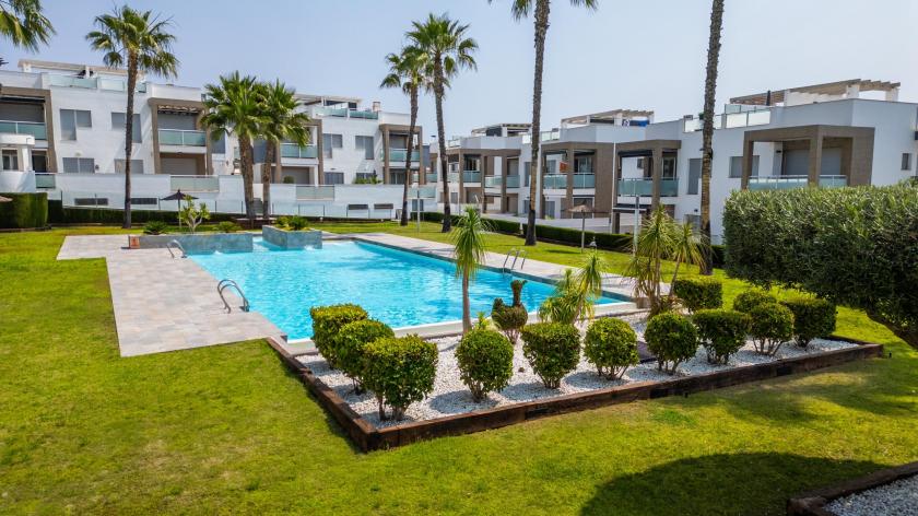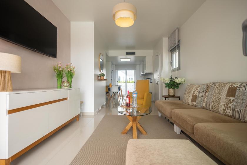 Punta Prima es un lugar excelente para quedarse, ubicado de manera central y ideal tanto para estancias cortas como largas en invierno. El complejo se encuentra a solo 13 minutos a pie de la playa y ofrece todas las comodidades necesarias, como tiendas, bares y restaurantes, al alcance de la mano.